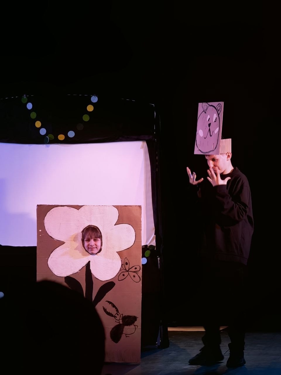 И снова всё было сделано своими руками. На этот раз наши маленькие творцы решили обойтись без теней. Зато они создали потрясающие декорации, которые прекрасно дополняли их актерское мастерство!